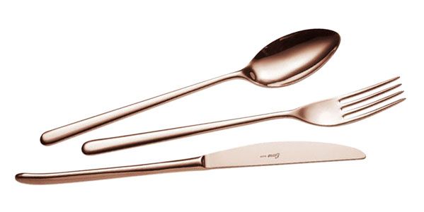 Nuestra represetada Eme-Posaterie, ha presentado hace poco este nuevo acabado COBRE-BRONCE en tres modernas cuberterías: