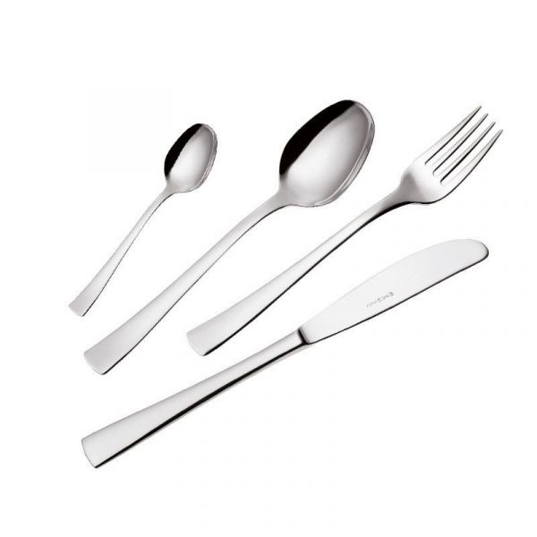 Alfa es una colección de cubiertos de acero inoxidable 18/0 con acabado pulido.