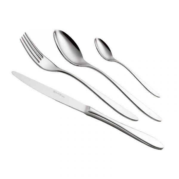 Oasi es una colección de cubertería disponible en una gama de 16 artículos y se puede vender suelta para componer el servicio según diferentes necesidades o en packs.