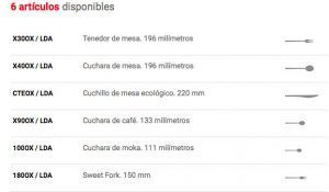 Este modelo de cubiertos dispone de una gama de 6 artículos y se vende a granel ó componer el servicio según diferentes necesidades o en packs.