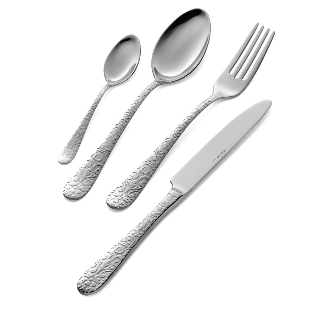 Portofino es una colección de cubiertos con una forma suave e importante caracterizada por un elegante grabado floral tridimensional en el mango.