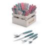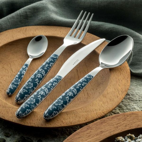 Vero Flowers de la colección Classic es una cubertería de acero inoxidable 18/0 con acabado pulido y mango de PBT soldado por ultrasonidos con decoración impresa por sublimación.