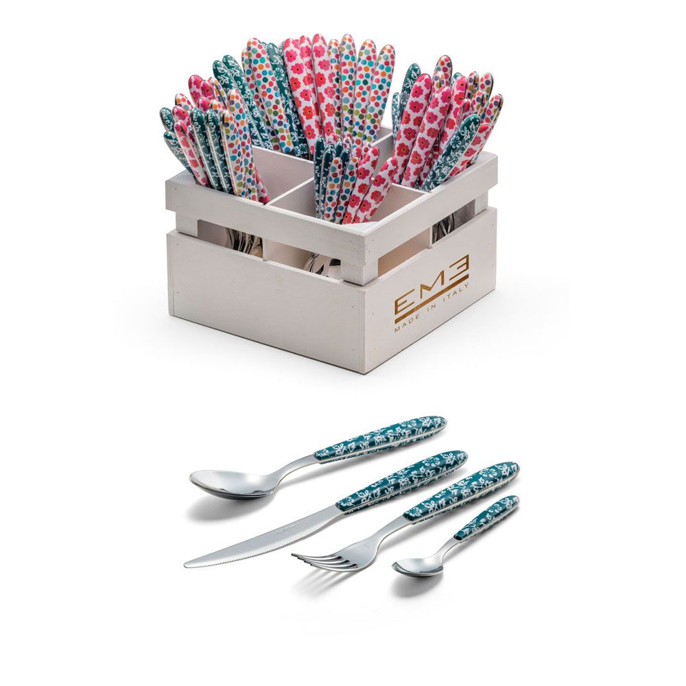 Eme-Posaterie es uno de los mayores fabricantes de cuberterías con mango de color y de acero inoxidable, con presencia en más de 62 países, muy competitiva y con un standar de calidad muy alto, tanto en las terminaciones de las cuberterías como en la calidad del acero usado en la fabricación de las mismas.