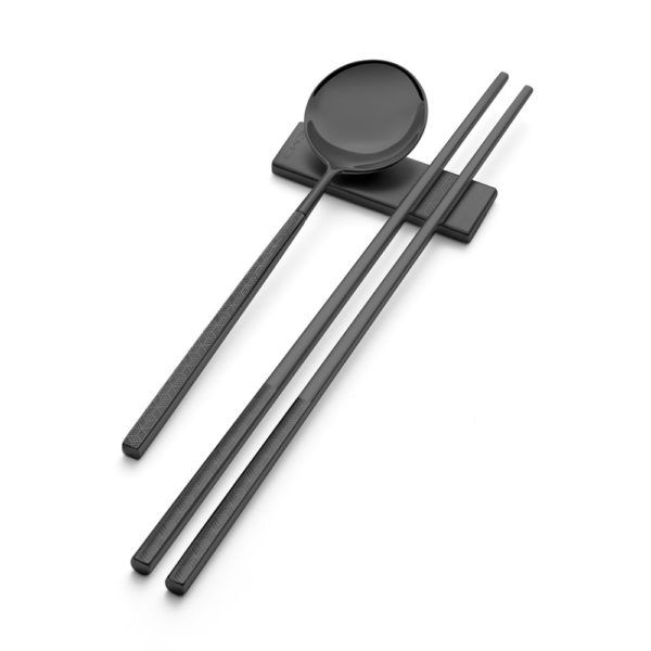 La principal característica de Kyoto Sushi Origami Black es la sencillez de su diseño icónico, casi infantil. El diseño se desarrolló en torno a la idea de pureza, el equilibrio entre la ligereza del mango y la redondez de los vasos cuchara.